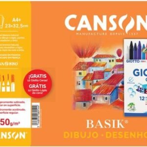 Bloc dibujo basik premium espiral a4+ 20h 150g. liso + Estuche 12 ceras giotto gratis